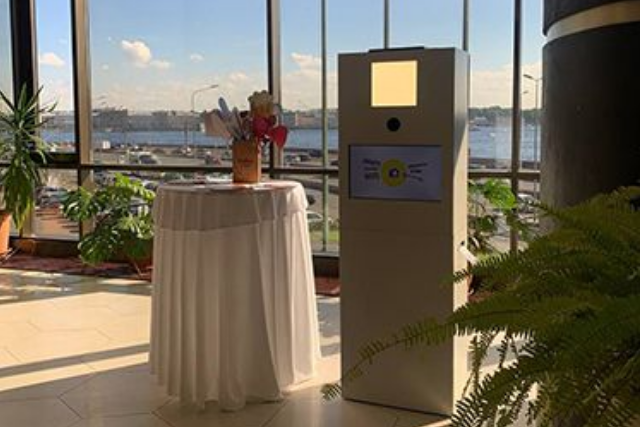 Большой форум: в деловой среде будка служит отличным инструментом для привлечения внимания к стенду и сбора контактов. Печать логотипа на каждом снимке обеспечивает нативную рекламу бренда, которая останется у участников после форума.
